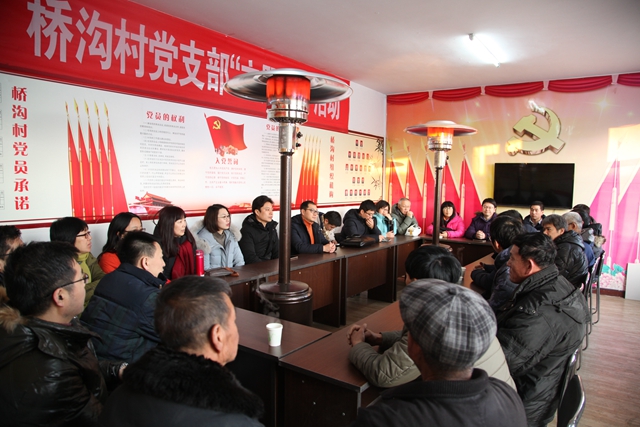劉偉光介紹了橋溝村一年來各項黨建工作和脫貧攻堅工作開展情況。在縣鎮兩級黨委、政府的正確領導下,在北京理工大學的全力幫扶下,橋溝村認真學習貫徹黨的十九大精神,切實發揮黨員帶頭作用,大力發展村集體經濟,全力推進美麗鄉村建設,于2017年底實現整村脫貧。后續工作中,橋溝村將以習近平新時代中國特色社會主義思想為指導,創新思維,真抓實干,精準發力,扎實推進“連心橋·建新溝”黨員創先爭優行動等推動脫貧攻堅的新舉措。范文輝表示機械與車輛學院黨委高度重視方山縣橋溝村扶貧開發工作,學院主要領導親自部署幫扶相關工作,并將持續推動各項工作的落實,為貧困地區的脫貧攻堅做貢獻。韓愷表示通過此次參觀調研,深切感受到了中央和各級黨委、政府全面建成小康社會的決心,并代表學院黨委向橋溝村捐贈了集體經濟發展幫扶資金,進一步助力橋溝村集體經濟發展。劉博聯表示自2016年北京理工大學定點幫扶方山縣及橋溝村以來,機械與車輛學院給予了方山縣及橋溝村多方面幫助,極大地推動了方山縣及橋溝村的脫貧攻堅工作的開展,2018年是方山縣的脫貧摘帽年,全縣人民將在縣委、縣政府的領導下,借助國家扶貧開發工作的東風,全力打贏脫貧戰。