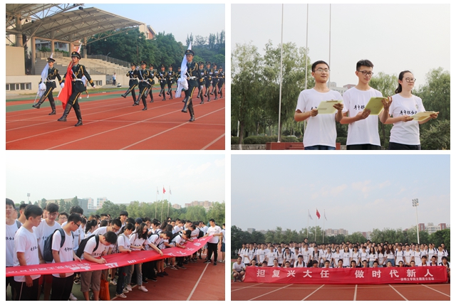 7月1日早,徐特立學院2016級、2017級全體學生在良鄉校區參加升旗儀式。伴隨著雄壯的國歌聲,五星紅旗在朝陽中冉冉升起。響徹校園的不僅是在場全體人員共同唱響的國歌,更是在黨的97歲生日時,徐院學子做出的莊嚴承諾?!皶r代新人,要有理想;時代新人,要學本領;時代新人,要肯奮斗……”,國旗下,學生代表朗誦了徐特立學院原創作品——《時代新人,從這里出發》,道出了北理工青年的共同心聲。在《歌唱祖國》的激揚旋律中,同學們在“擔復興大任,做時代新人”的橫幅上莊重簽字,對黨和國家許下時代諾言。