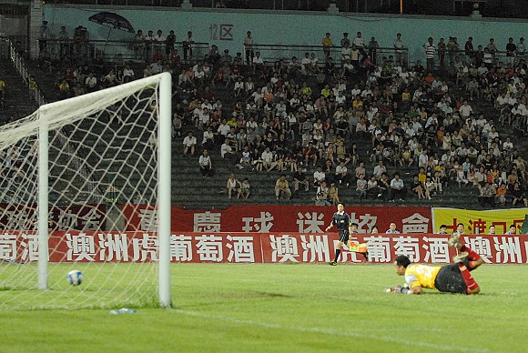 “實力不濟、經驗不足,輸球太正常不過了。”金志揚的話似乎有些先知先覺。重慶力帆與北理工的比賽被安排在晚場舉行,由于重慶地區氣候悶熱,再加上首次參加晚場比賽,學生軍的小伙子們多少有些不適應。他們在上、下半時分別被力帆隊外援桑托斯、范冬青打入兩球。不過輸球的老金賽后卻很自豪:“一次通過定位球,一次通過界外球,力帆兩個進球都是利用我們經驗不足,但是隊員們自始至終都沒有放棄過爭取破門。最后力帆隊兩名隊員抽筋了,我們沒有一個抽筋啊。魏新賽后帶頭向我們致敬。”