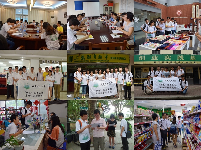 7月23日,實(shí)踐團(tuán)第二組到達(dá)了華東師范大學(xué),勤工助學(xué)中心主任施丹輝老師和副主任田潤老師的熱情接待了實(shí)踐團(tuán)的到來并舉行了座談會,會后實(shí)踐團(tuán)參觀了禮品店、愛心屋等實(shí)體;次日,實(shí)踐團(tuán)到達(dá)復(fù)旦大學(xué),勤工助學(xué)中心的呂異穎老師和學(xué)生骨干熱情地接待了實(shí)踐團(tuán)的到來,介紹了本校勤工助學(xué)工作的特色業(yè)務(wù)后,帶領(lǐng)實(shí)踐團(tuán)參觀了家教部、學(xué)生自助超市和禮品屋,并且詳細(xì)地介紹了各實(shí)體的運(yùn)作流程;當(dāng)日下午,實(shí)踐團(tuán)趕往同濟(jì)大學(xué)和上海財(cái)經(jīng)大學(xué),訪談了部分暑期勤工助學(xué)的同學(xué),并發(fā)放了調(diào)查問卷;最后,實(shí)踐團(tuán)到達(dá)了華東理工大學(xué),與暑假還在運(yùn)行的勤工助學(xué)中心家教部工作人員進(jìn)行訪談,并在校園內(nèi)發(fā)放了調(diào)查問卷。