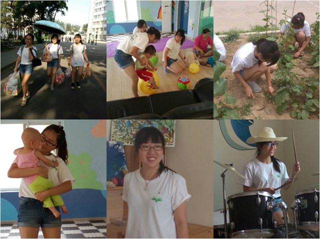 7月20日早上,經(jīng)過近4個(gè)小時(shí)的顛簸,綠色夢(mèng)之隊(duì)來到了燈塔之光。敲開大門,一眼望去便看到對(duì)面墻上的“bethel”紅色大字,右邊一排房子分別是教室、餐廳、廚房,左邊是小孩子的活動(dòng)室,與之相連的還有一個(gè)小游泳池。院子中間是一大塊草坪和菜地,幾株向日葵開得正盛,象征著希望與未來。夢(mèng)之隊(duì)選擇了勞動(dòng)來為盲童院貢獻(xiàn)自己的一份力量;通過游戲與活動(dòng)和盲童進(jìn)行交流和了解,為他們送去關(guān)懷與愛心,希望他們能夠健健康康成長(zhǎng),快快樂樂生活。