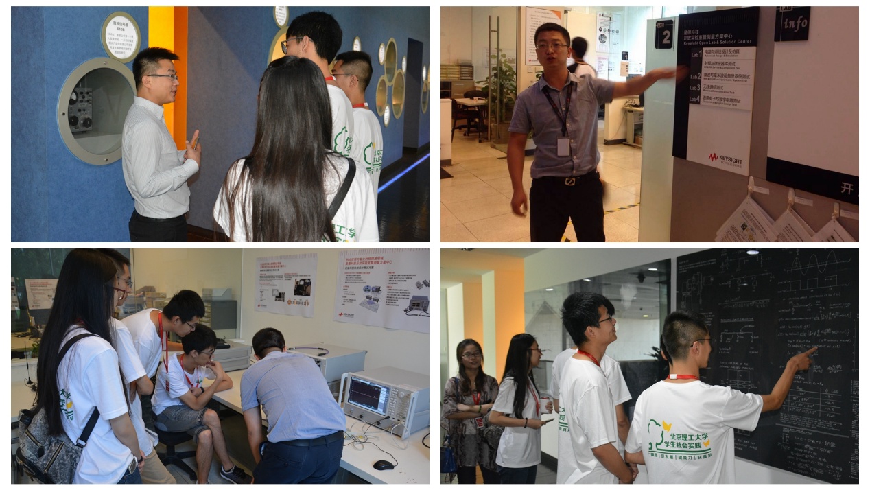 緊接著,資深銷售工程師王奉帶領大家參觀了公司具有里程碑意義的儀器,包括最早的信號源、示波器、銫鐘源等等。隨后,實踐團走進了是德科技的開放實驗室。高級應用工程師于洋詳細地為同學們介紹了各種儀器的型號及性能,并為同學們做了兩個演示實驗。實驗室免費對外開放,個人和機構都可以撥打預約電話申請,通過審核就可以免費使用這些昂貴的儀器設備,接受專業工程師的指導。據介紹,位于北京的這家開放實驗室每周平均要接待7~8家單位。是德科技在中國一共建立了四個開放實驗室,分別位于北京、上海、深圳和成都。