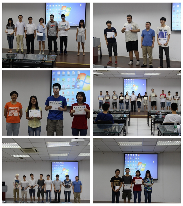 在8月2號暑期集訓的閉幕式上,各類專攻方向的參訓學員都在一定程度上有所收獲,參加各類科技競賽的同學做了精彩的成果展示;趙漢青老師就各項集訓工作做了總結匯報。出席閉幕式的趙滿老師,譚毓安老師和祝烈煌老師為在總結賽中獲得好成績的10支隊伍頒獎,并為整個集訓進行了總結發言,希望同學們能善抓機遇,通過老師及同學的發言,把握演講過程中的思路技巧,多培養自身在這方面的能力,勤思考,構建一種良好的思維框架,多元化地自我提升。至此,2015年暑期集訓工作圓滿結束。