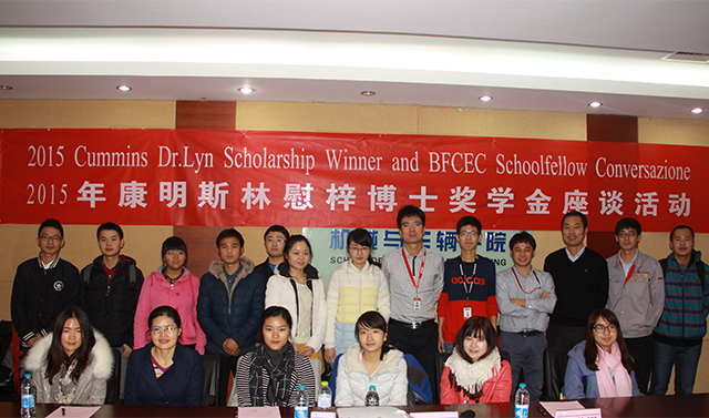 2015年11月10日,北京理工大學機械與車輛學院2015年度康明斯林慰梓博士獎學金頒獎儀式在中關村校區車輛重點實驗樓報告廳舉行。出席本次頒獎儀式的有北京福田康明斯發動機有限公司黨委書記詹振京、北京福田康明斯發動機有限公司人力資源部總監范慧嫻、北京福田康明斯發動機工廠廠長 DES 、ISG 發動機技術總工周卉、機械與車輛學院黨委書記左正興、獎學金評審委員會主任郝佳馨以及北京福田康明斯發動機有限公司的其他嘉賓。