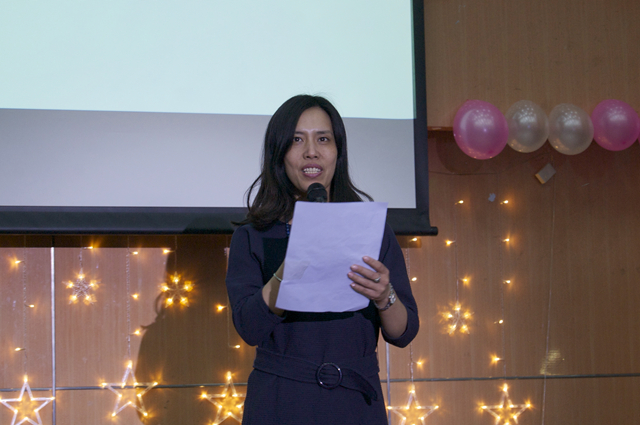 晚會開場,首先由外國語學院黨委副書記、副院長吳文君致辭。吳文君對2015年做了簡單的回顧和總結,并希望通過本次晚會,大家在歡慶的同時,能夠學習先進,用更昂揚的姿態迎接新的一年的到來!