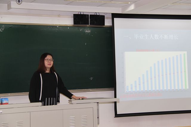 管老師首先對就業形勢進行了解析。近年來,畢業生人數在不斷增長。預計2017年應屆生、海外歸國人員和未就業往屆畢業生共有1000萬求職的大學生。然而單位招聘崗位對比往年相對減少。國企、外企、民企遭遇“寒潮”,北京市縮減戶口指標都加劇了這一情況。單位招聘呈現時間早、很集中、門檻高的特點。北、上、廣、深等各大城市就業難度繼續加大,二、三線城市收入差別不大、生活成本低、發展平臺好。海外留學生歸國潮也加劇了就業形勢嚴峻的局面??偟每磥?,對于應屆畢業生來說,就業形勢并不樂觀。接著,管老師詳細的介紹了學校的一些促就業政策,并指出畢業生可以通過學校和學院舉行的小型宣講會、大型雙選會、就業信息網等渠道了解求職信息;鼓勵大學生們要找準定位,調整求職期望值,“廣泛撒網,重點捕魚”。管老師向大家介紹了求職的一些經驗、方法,如求職的流程、需準備的材料、求職的主要渠道,還根據往屆同學真實的案例詳細講解了求職面試應注意的技巧。除此之外,管老師還介紹了畢業生派遣知識和就業中常遇到的問題。如簽約必備的畢業生就業推薦表、就業協議書,離校必備的報道證、戶口卡等。